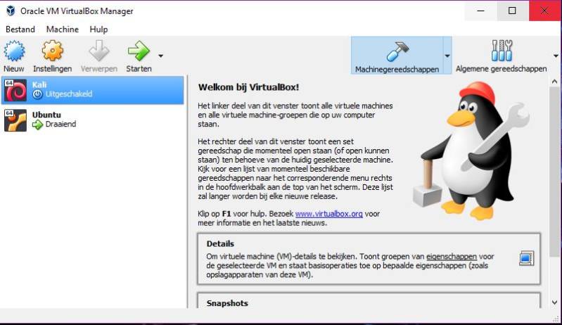 Ik heb samen met Rafael Kali en VirtualBox gedownload en we hebben ook kali lesje gekregen.